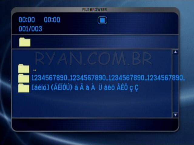 Na próxima imagem , veja que o firmware, para nomes de pastas, aceita toda a acentuação em Português e, exibe até 44 caracteres nos menus, não importando a largura individual dos caracteres.