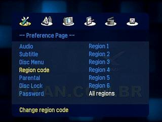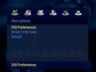 | “DVD Preferences” dá acesso à página ao lado, que é a mesma acessível pelo quarto ícone do menu, mas que normalmente fica inacessível enquanto existe um disco no loader.