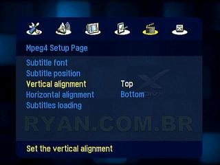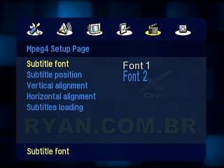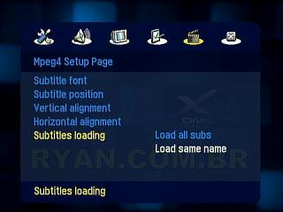 | Aqui você escolhe se quer que o aparelho carregue apenas as legendas que tem o mesmo nome que o filme ou se quer que carregue todas as que encontrar. |