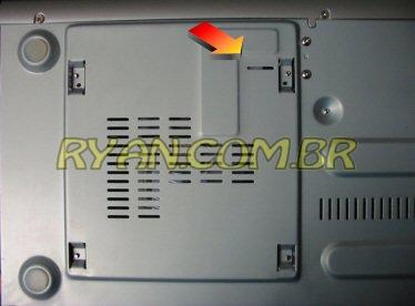 Atenção: você precisa fazer essa operação com o aparelho na posição “normal” ou com com a bandeja abrindo em direção ao chão, porque do contrário o disco poderá cair dentro do aparelho! Antes mesmo do loader começar a abrir o disco já estará destravado! Nas fotos abaixo o DVP642 está apoiado no chão, mas isso foi só para facilitar a fotografia. Se fizer assim o disco corre o risco de não sair!