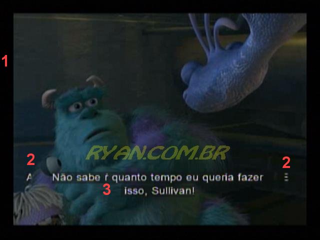 2)Esses fragmentos de legenda foram deixados por uma legenda particularmente comprida que apareceu antes. O DVP642 simplesmente deixou-os lá e eles continuam na tela mesmo com a mudança das legendas. Isso deve ser um efeito colateral do uso de uma fonte maior.