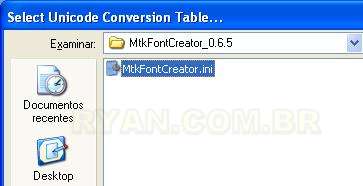 Execute o MtkFontCreator. Se ele fizer a solicitação abaixo, indique o arquivo mtkfontcreator.ini (no mesmo diretório onde está o .exe) e clique em “abrir”.