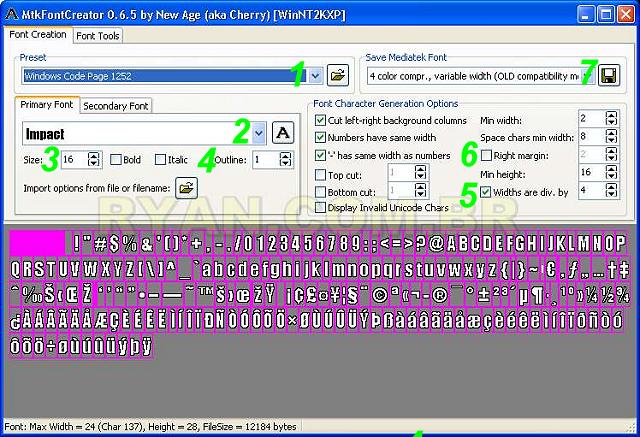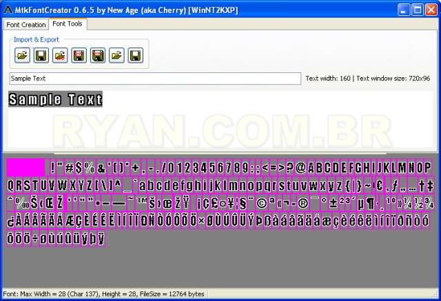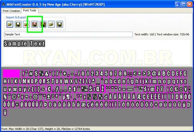 Abra o arquivo no mtkFontCreator, usando o botão de importação de BMP indicado