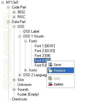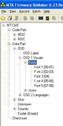 Abra o firmware que você deseja modificar com o mtkRemaker e expanda a árvore como indicado até chegar em “Fonts”