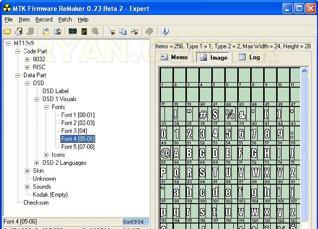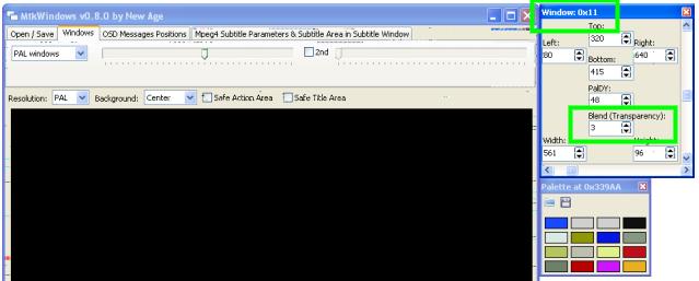 Passo 2.1Se a fonte original tem transparência, a modificada também ficará transparente. Para tornar a fonte opaca, você precisa agora abrir o firmware no mtkWindows, selecionar a janela de legenda (é a 0x11 para firmwares Philips e 0x12 para o Lenoxx) e colocar blend=3. [06/06/07] Para os Philips DVP5960 e DVP5965 a janela é a 0x12. |