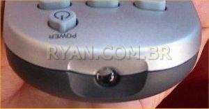 Usa duas pilhas pequenas comuns, AA. Na foto estou usando alcalinas, mas geralmente é um desperdício usar esse tipo de pilha em um controle remoto doméstico.