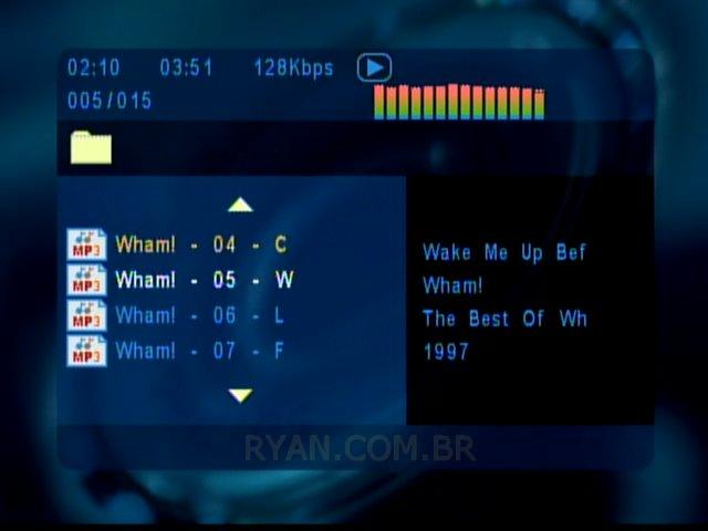 No retângulo direito, você pode ver as tags ID3 sendo exibidas. Perceba que infelizmente a Philips só exibe 14 caractres de cada tag, o que reduz bastante a utilidade das mesmas, mas é melhor do que nada (o caso do DVP642).