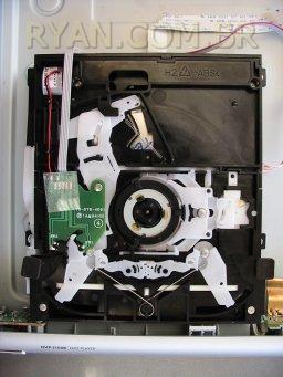 Você pode ver pela imagem acima que o DVP5100 também não tem o rasgo para ejeção de emergência. Existe uma alavanca de ejeção no fundo do loader, mas como o fundo do aparelho é completamente fechado você precisa abri-lo e remover o loader para fazer a ejeção, caso um disco seu fique preso.