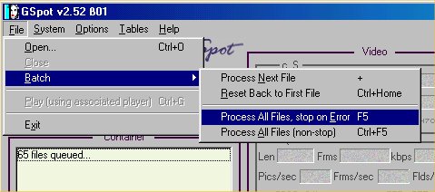 [Download do GSPOT v2.5b01] [Home Page do Autor] Texto publicado em 28/12/2004 Este texto é auxiliar do meu review do Philips DVP642K/78 Você já deve saber que as versões 2.5 beta do GSPOT são capazes de mostrar se um AVI foi codificado com QPEL ou GMC (tornando-o incompatível com o DVP642), mas se tentou usá-lo para verificar mais que um punhado de arquivos deve ter percebido que é muito tedioso verificar um por um, porque ainda faltam duas coisas no GSPOT: