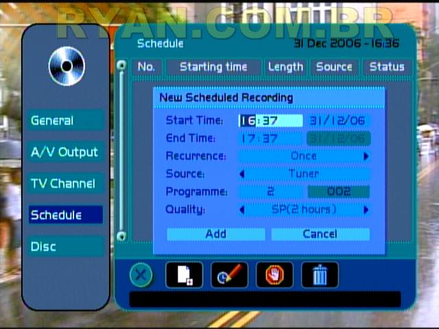 Você pode escolher entre DVD, Line-In e sintonizador. Infelizmente