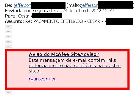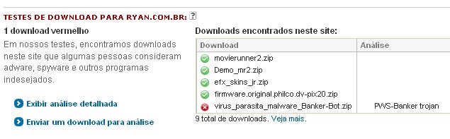 fiz uma varredura on line do McAfee Security Scan Plus. E no ítem “Detecção de ameaças” ele listou o site “ryan.com.br” como “Site nocivo”… o que acha disso??? rsrsrs…