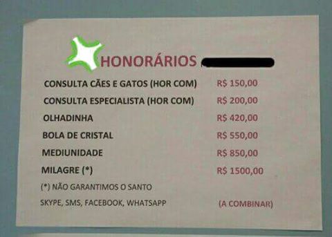 O que me lembrou imediatamente das tabelas de preço de alguns veterinários (clique para visitar a fonte):