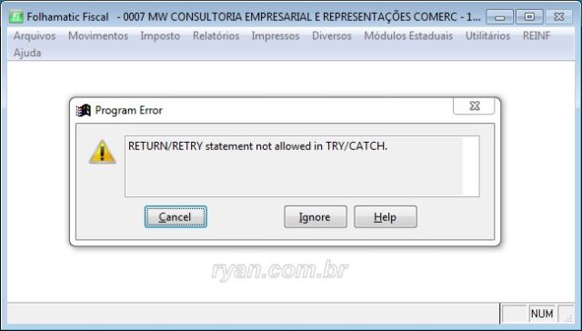 Ao tentar abrir o programa os seguintes erros apareciam em sequência: