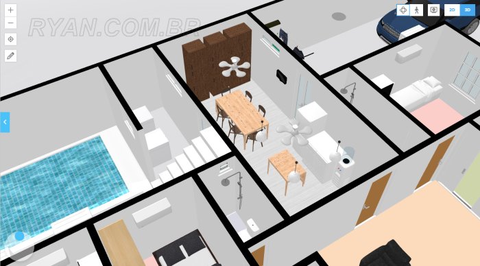 • Na visualização 3D você pode observar de dentro do cômodo. Basta selecionar a câmera 2;