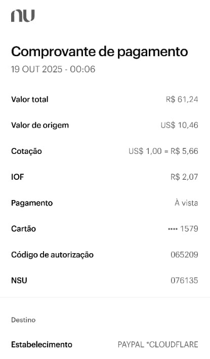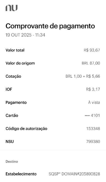 Jefferson,  26 de outubro de 2025, Logo quando recebi a notícia de que a Squarespace havia comprado toda a carteira de clientes do Google Domains por uma pequena fortuna, estava claro que eles iam querer tirar o custo da aquisição de qualquer jeito dos clientes. Para começar, o custo deles é bem mais alto que o da Cloudflare para o mesmo TLD. Na Cloudflare me custou R$61,67 e na Squarespace, apesar deles dizerem que seria R$87, me custou R$93,67. Uma diferença de 50%.