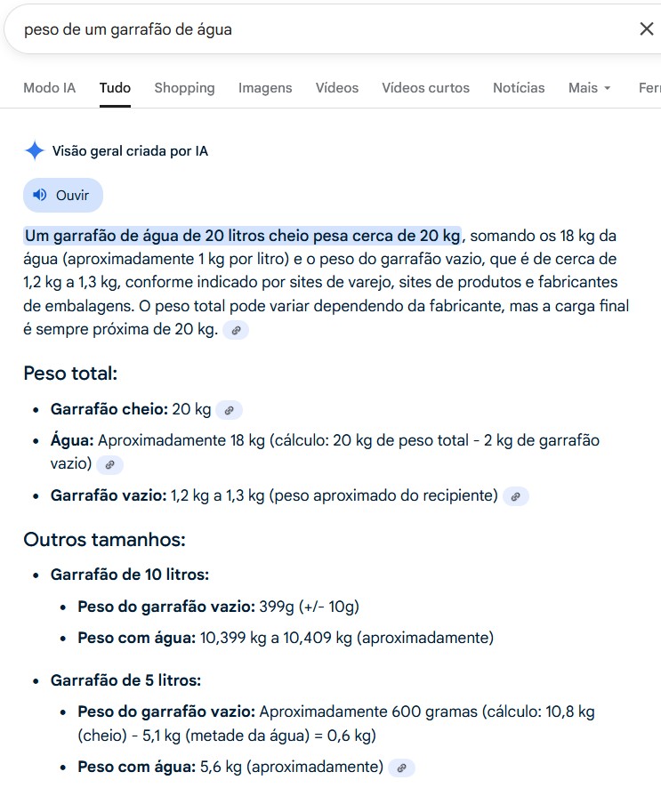 Para não deixar perdido quem esqueceu o que foi ensinado no primeiro grau: Um garrafão de 20 litros de água cheio tem que pesar mais que 20kg, porque a água pesa 20kg (e não 18kg). E antes quer você diga: “ahhh, mas a inteligência talvez estivesse se referindo a…”, leia e confira a resposta inteira.